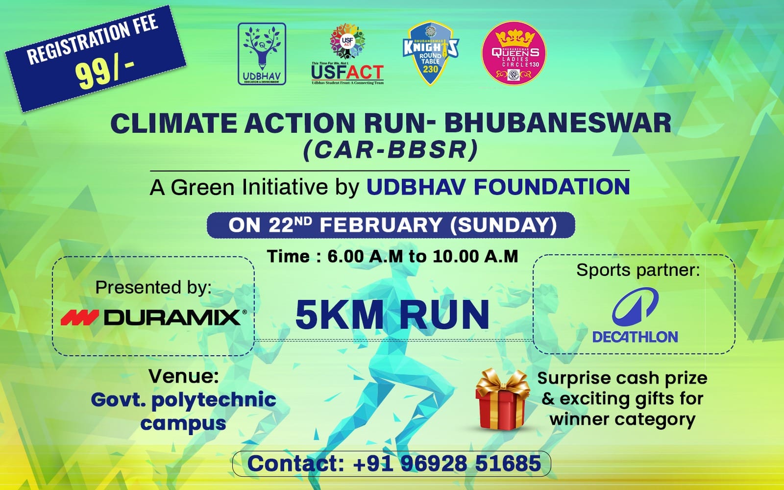 Udbhav Foundation is organizing a Climate Action Run β 5KM on 22nd February 2026 at Bhubaneswar to spread awareness about climate change and the urgent actions needed to protect our future.