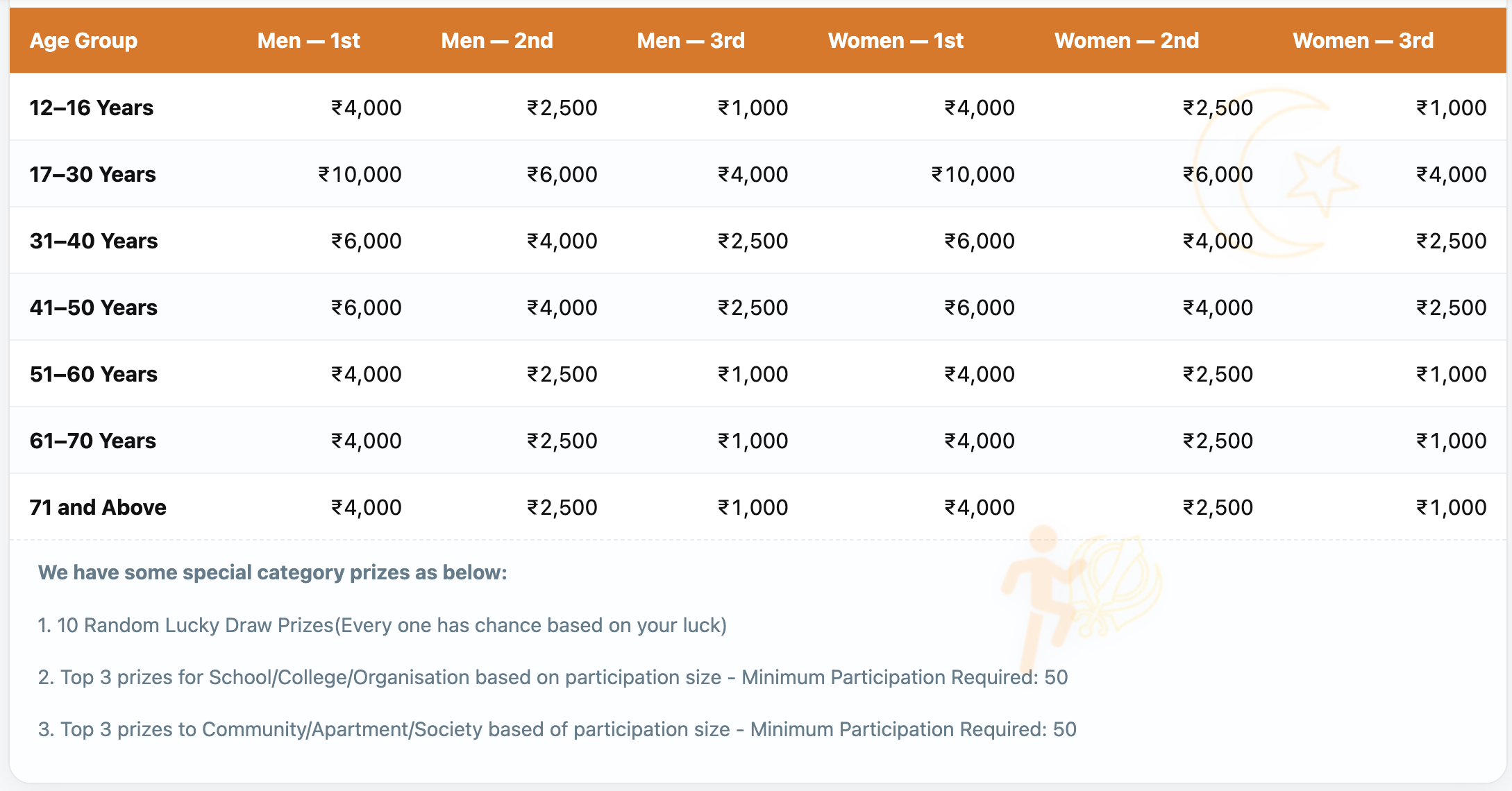 JAGA 5K RUN β Prize Money (Men & Women in each Age Group)