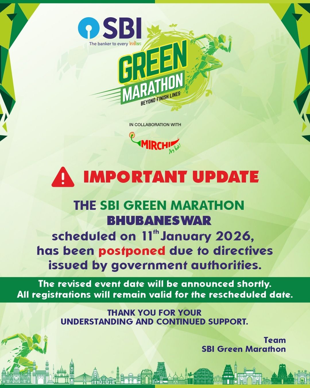 We would like to inform all participants that the SBI Green Marathon β Bhubaneswar, scheduled on